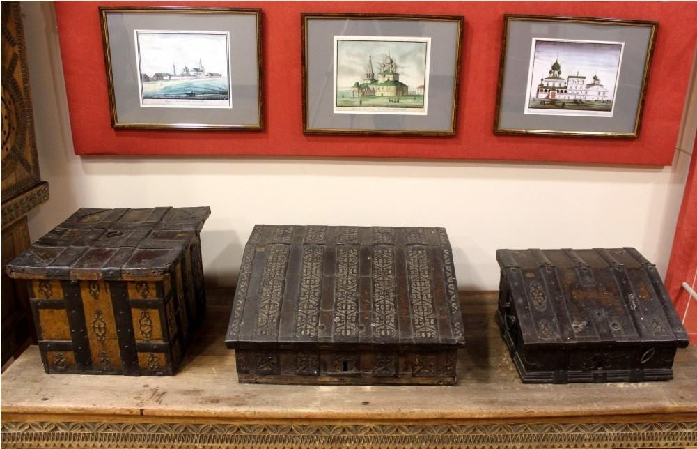Первые Романовы были внимательны к Угличу. В старинных витринах представлены гравюры с их портретов, вклады в храм, такие как Евангелие, крест, потир и другое. Атмосферу города в XVII в. воссоздают картины краеведов В. И. Серебренникова и И. Н. Потехина, на которых можно увидеть вновь отстроенные кремль и посад; в витринах – предметы быта горожан (замки, такни, сундуки и другое) и церковной жизни (икона XVII в. «Воскресение», вериги, колода, схима и другое). На гравюрах – Петр I и Екатерина II, первый герб Углича, деньги Монетного двора империи, пушки, ядра, штуцеры, пистолеты. Также представлены атрибуты времени: образцы мер и весов, цеховые знаки ремесленников, мебель, костюмы и другое.