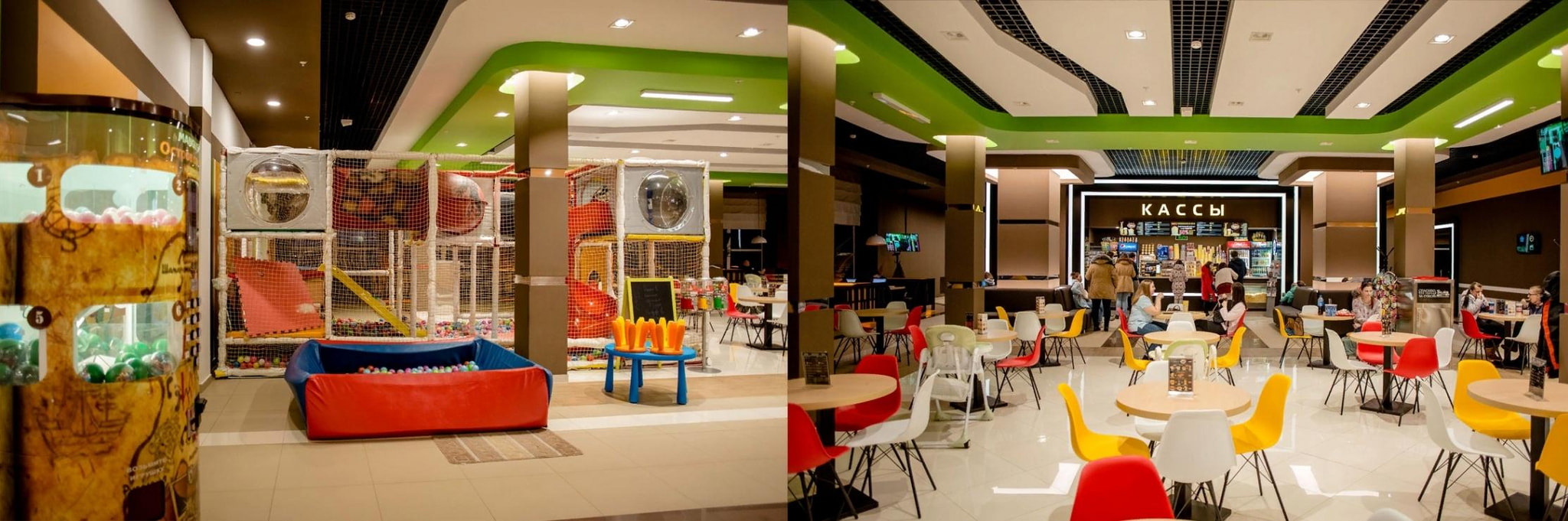В зоне фуд-корта есть городок для детей, различные игровые автоматы и ресторан быстрого питания «Вилка», где можно приобрести еду и напитки как до, так и после фильма.